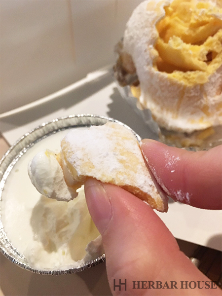 このように付属の生クリームをつけて食べていきます。