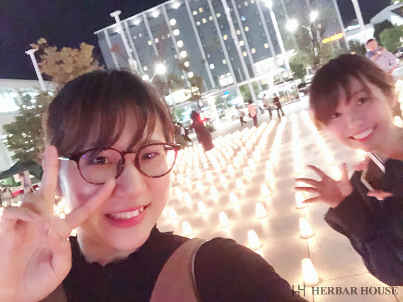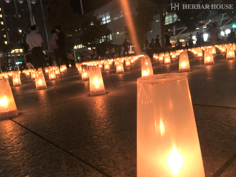 広場中に、キャンドルの優しい光が広がっていて、