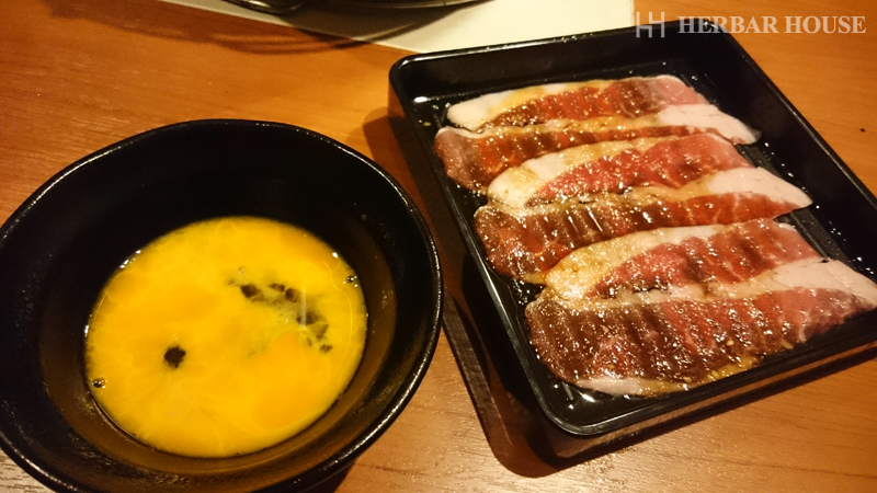 焼いた肉を溶いた卵にくぐらせて食べるというものでした。