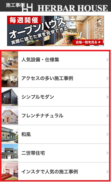 ハーバーハウスのホームページにある、「施工事例集」です。