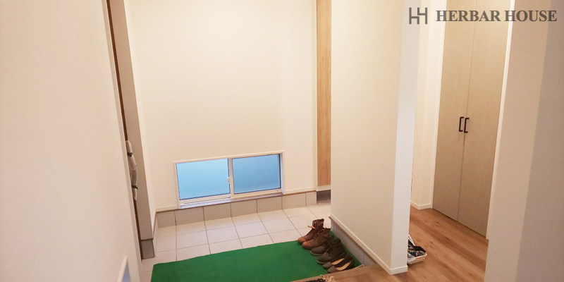 玄関からリビングへ続く空間は広々としており、開放的でした。