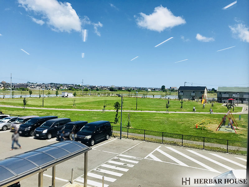 隣にはこのように広い公園、周辺には商業施設がたくさんあって、