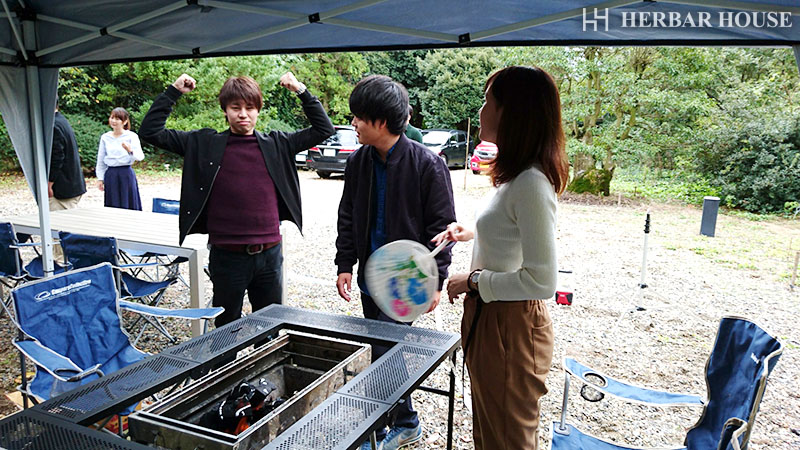 研修が一通り終わると、石村社長や、各所属部署の先輩方を招いてのBBQを開催しました!