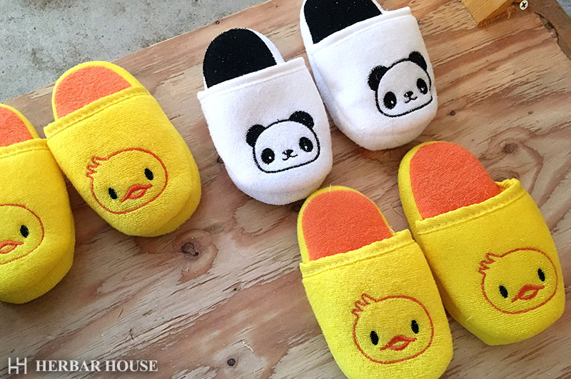お子様用の軍手と可愛いスリッパを準備してお待ちしております