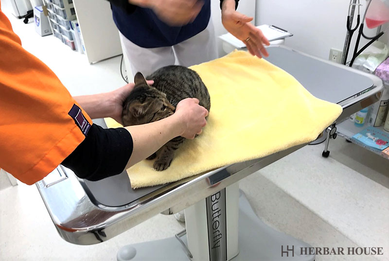 2匹1度には出来ないとのことだったので、まずはお姉さんのキジトラの方から。