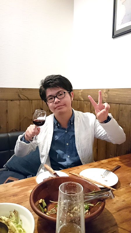 続いては飲み会ですが、先輩設計士の田中さんにワインのおいしいお店を紹介していただき、
