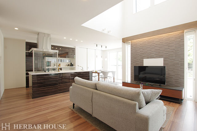 21.5帖の広々としたLDKに、吹き抜けの天井、オープンキッチン。