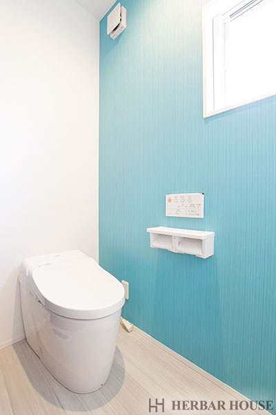 さらにこちらのお家のトイレには、アクセントクロスが使われています!