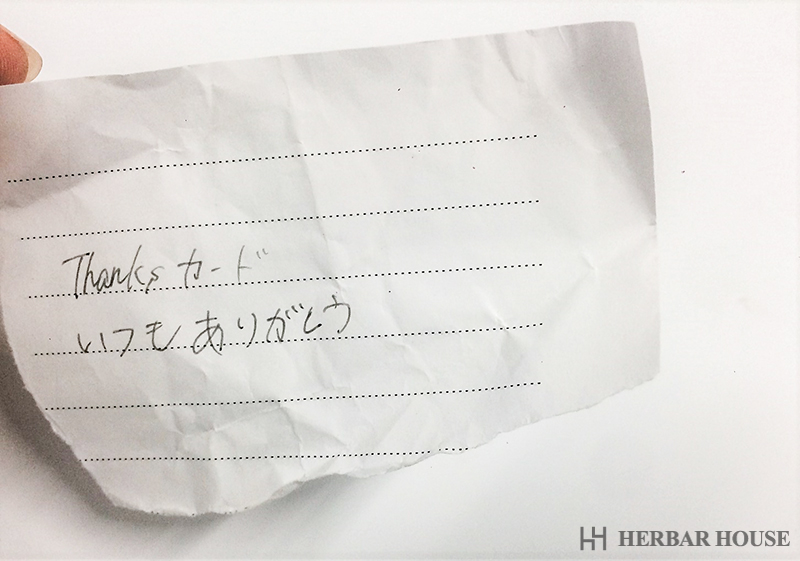 そこでも、ちょっと特殊なサンクスカードを頂きました。