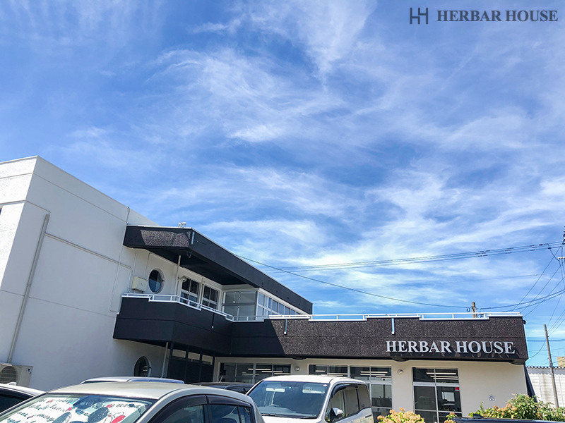 観葉植物と「HERBAR HOUSE」の文字で出迎えてくれます。
