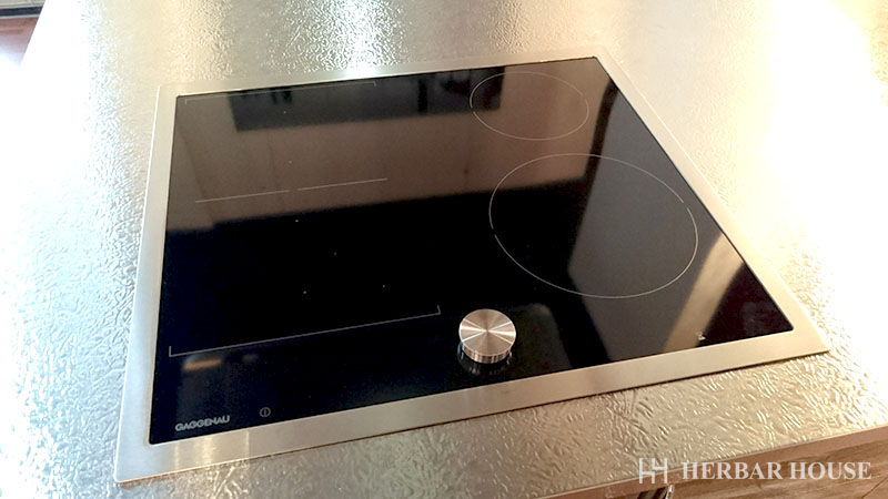 「GAGGENAU」のIHは、手前にある丸いシルバーのコントロールノブで
