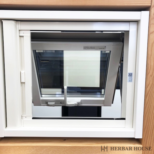 窓の上辺を回転軸に、室外側へ開く窓になります。