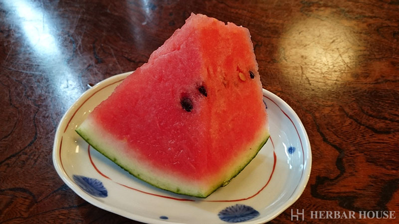 お店に行った時も暑い日で、サービスでスイカをいただきました!