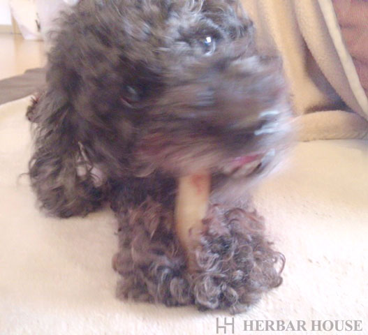 骨のガムを一生懸命噛んでいる様子です!