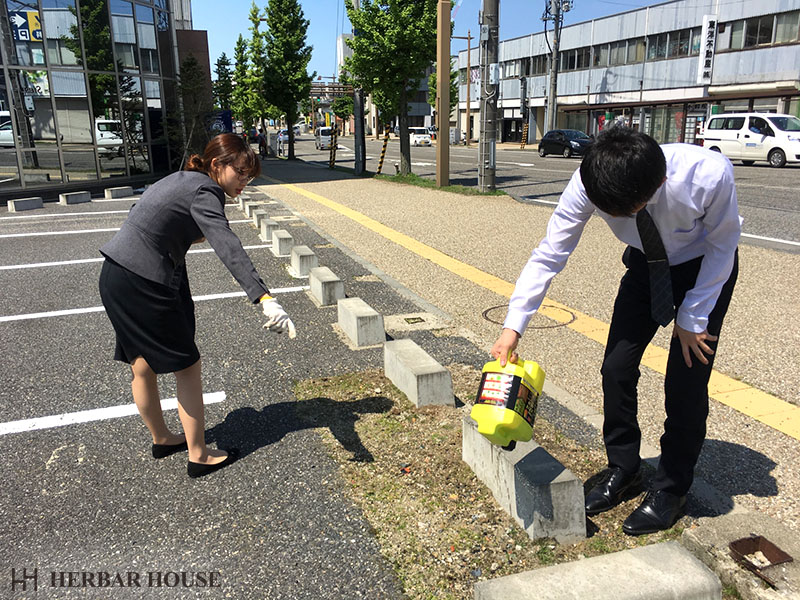 ハーバーハウス本社の付近の除草を行いました。
