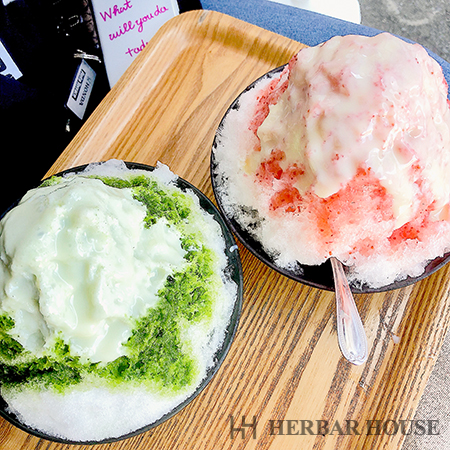 私は、抹茶のかき氷をいただきました!