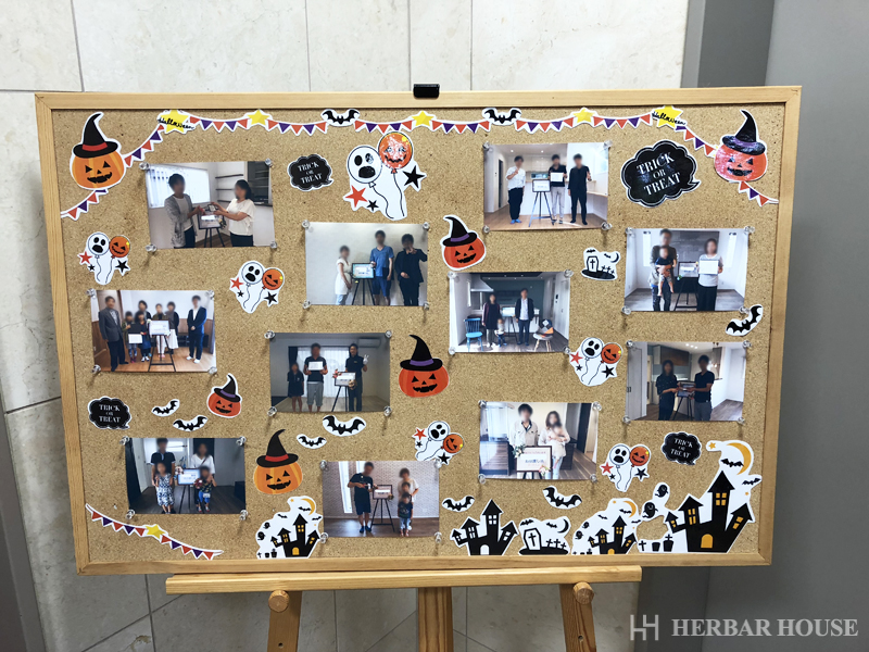 ハーバーハウス本社1階にあります、お引渡し写真のボードを