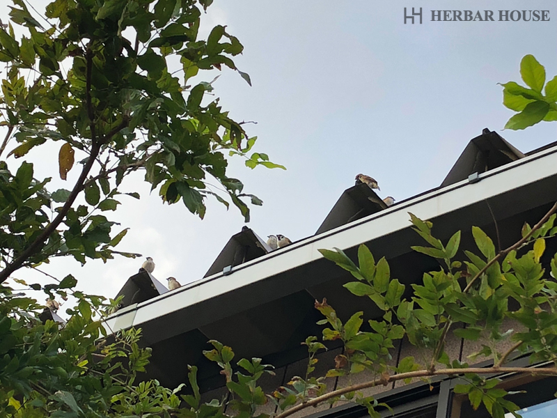 この時は、屋根の上にたくさんの鳥がとまっていました。