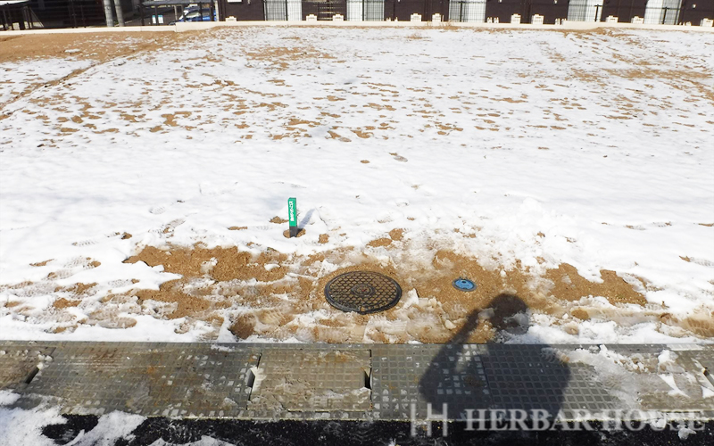 (左から「ガス管埋設杭(まいせつくい)」、「汚水桝(ます)」、「止水栓」です)