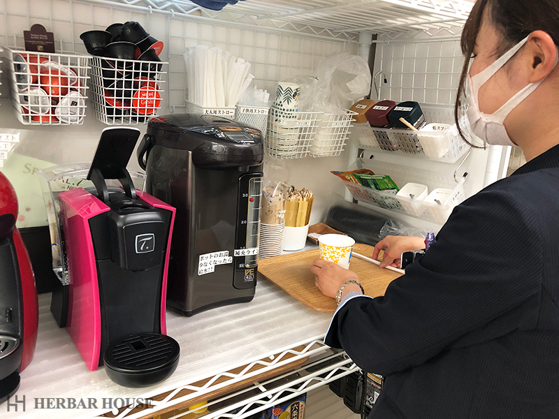 ここでいつもお飲み物のご用意をしています。
