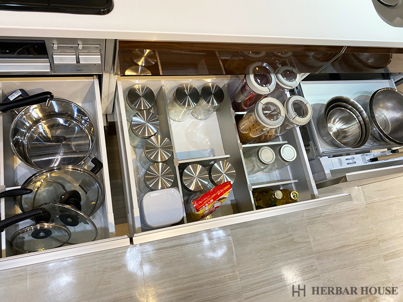 引き出しを全て開けて収納力を確認したり、