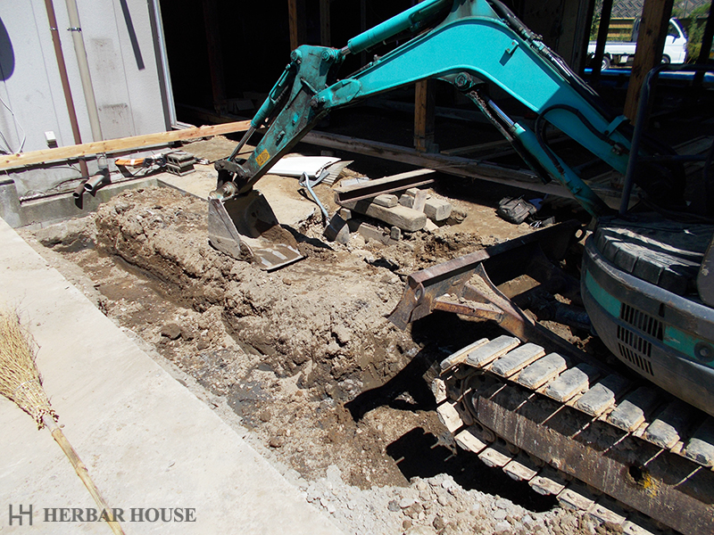 ※曳家・・・鉄骨のレールやジャッキを用いて建物を浮かす工事