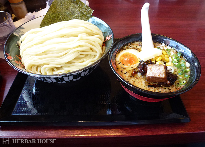 私は味噌のつけ麺を食べました。