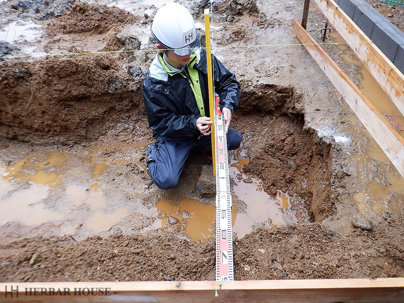 こちらは、建物の基礎の出来る位置や高さを検査する