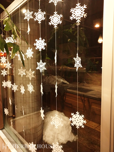 窓の雪の飾りがかわいいです。