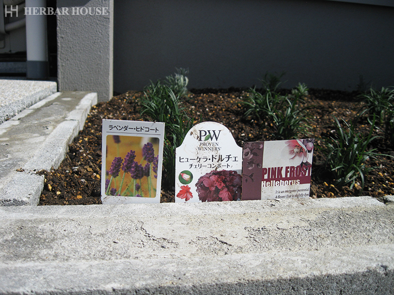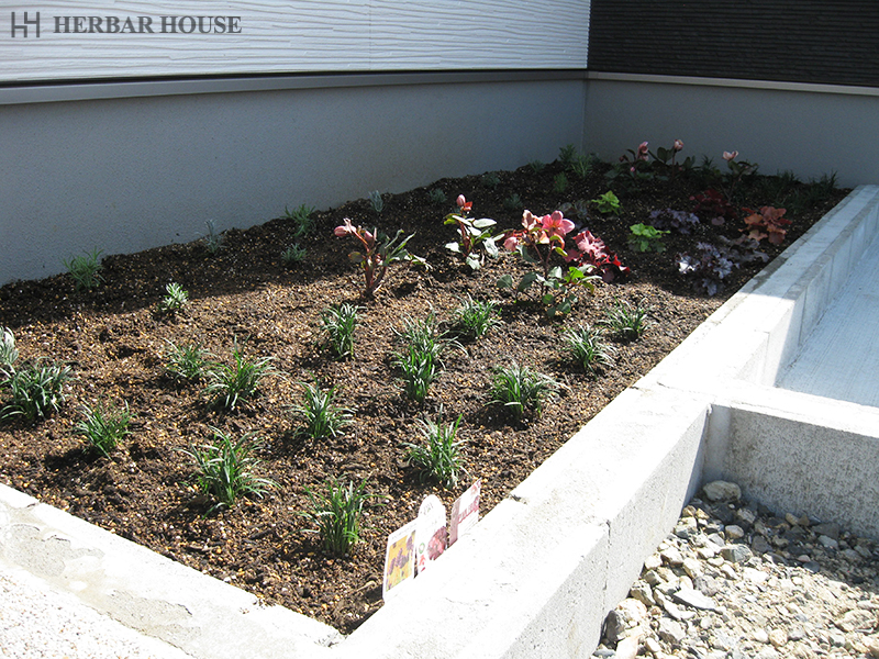 外構工事の現場にも花が植えられ、華やかに