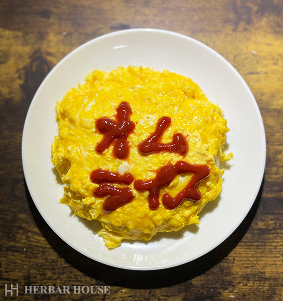 仕上げにケチャップで「オムライス」と描きました!
