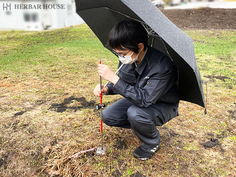 敷地や道路にいくつかの点を取って測定しています。