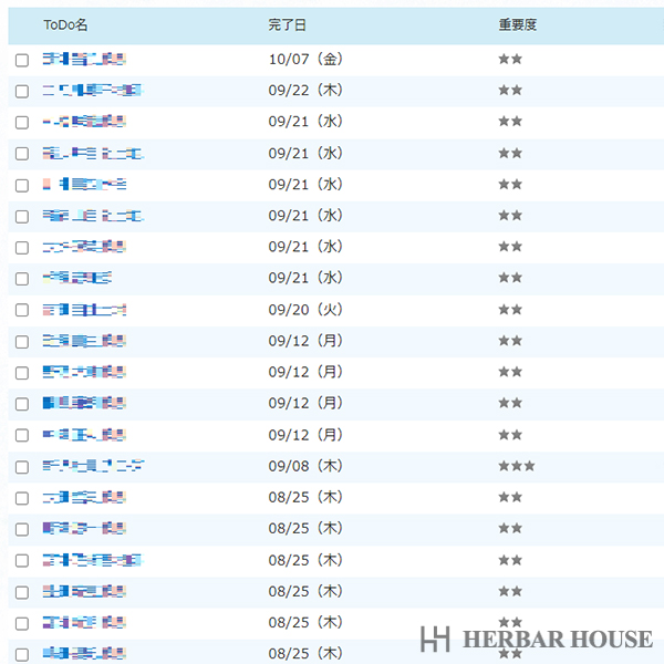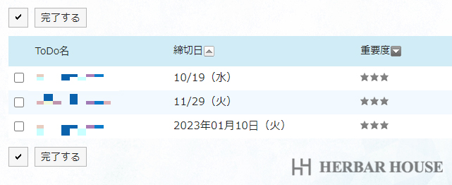 設定したToDoが赤くなるため、