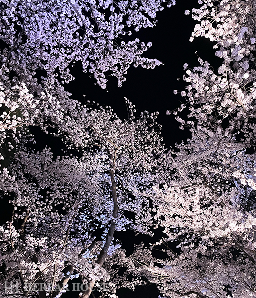 この写真は、今年友人と行った際に撮った夜桜です。