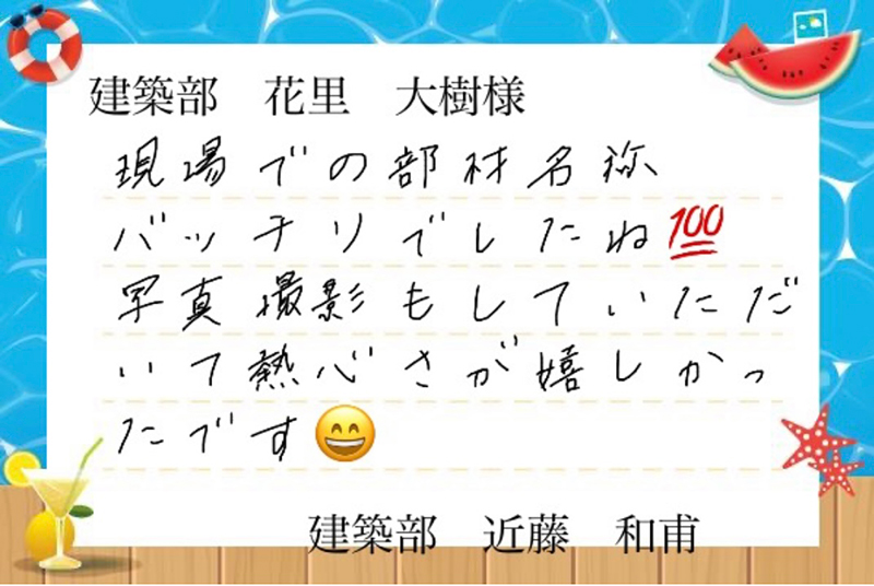 後日サンクスカードにて下のようなメッセージを頂きました!