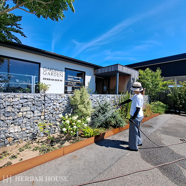 こちらは朝の水やりをする社員さんです。