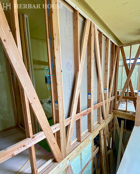 梁や柱、筋交い、下地、石膏ボードなど、